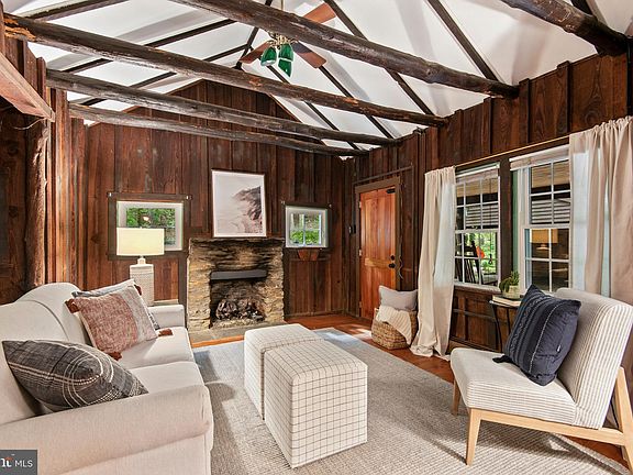 Are you looking for a non-traditional house that is far from ordinary? Do you desire a peaceful location amongst a natural landscape with minimal yard maintenance where you can spend your time enjoying the little things that life has to offer? You now have a rare opportunity to be the new owner of this Main Line cabin house that is situated in a natural setting amongst mature trees and babbling creek. Imagine yourself on the L-shaped covered front porch with log posts enjoying a novel or just relaxing and enjoying the wildlife. Inside you will find quaint living spaces with vaulted ceilings and exposed log beams. The cozy living room/dining room combo creates a sense of ambiance with lighted wall sconces, a dramatic stone gas log fireplace, and original wood floors. The eat-in kitchen features light wood cabinetry, tile floor, double pantry closet, dual oven, dishwasher, built-in microwave, refrigerator and a double bowl sink. It leads back to a nice sized laundry/mud room with washer and dryer and built-in cabinets. A convenient first floor powder room completes this level. The staircase leading to the second floor is a focal point of the living area with its rustic log railing. As you walk up the stairs to the left, you will find a one-of-kind main bedroom with vaulted ceilings, wood floors, sitting/dressing room and access to the updated tile bath. On the other side of the second floor, you will find an additional bedroom that could also be used as a dressing/vanity room. The detached 2-car carport offers a doorway to a storage area that could offer other uses if you have great vision (possibly an exterior entertaining space like an outdoor bar, etc!.) The location could not be better and is situated close to the train, shopping, Downtown Wayne, Valley Forge National Park, King-of-Prussia and so much more. This one-of-a-kind home will offer you many years of peace, solace, and happiness. Act now to be new owner of this rare and rustic Main Line cabin house. Seller to review all offers Saturday, September, 26th, 2020.