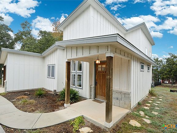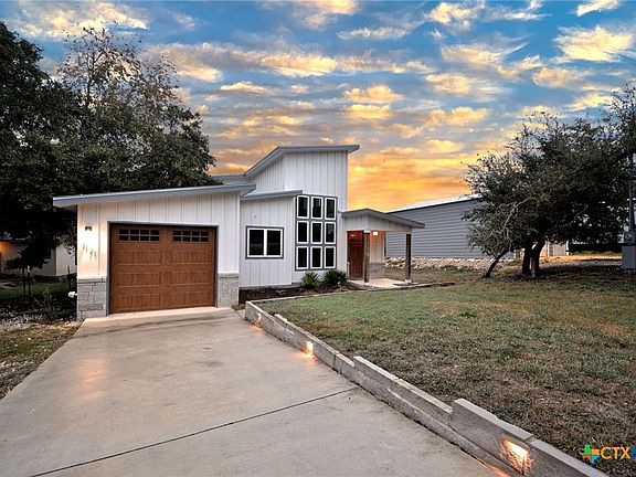 Gaze upon this magnificent hill country modern home that boasts any contemporary interior features. Make your self at home with the spacious, well-lit open floor plan, island kitchen subway tile backsplash and marble countertops, PLUS two bedrooms each with their own bathroom access. Warm up to the main primary bedroom suite with barn sliding door that separates the bedroom from the luxurious bathroom suite with built-in electric fireplace. Upstairs are two additional bedrooms, third bathroom, and additional living space that overlooks the post-modern architecture of the entire downstairs living room. This home is conveniently located near boat ramp 22 of Canyon Lake and Potters Creek Park.