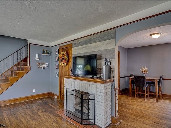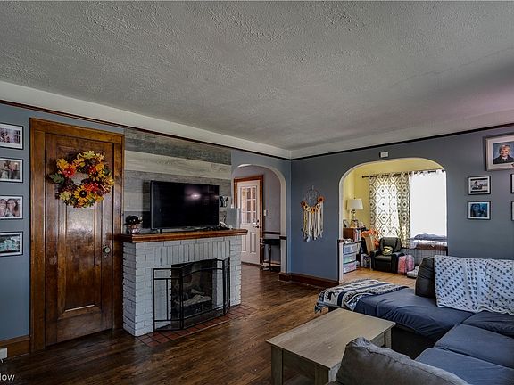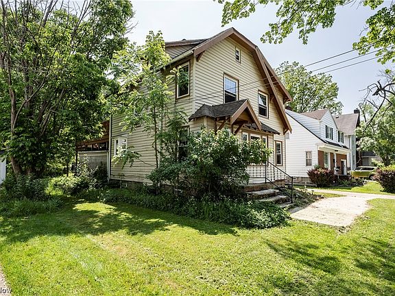 This comfortable colonial is filled with beautiful details and warm natural light. When you step in from the front door, you walk into an open living room with hardwood floors, rich wood trim for the windows and floorboards. The beautiful iron hand rail going to the second floor catches your eye. Don’t look past the brick fireplace, ready to keep you warm in our Cleveland winters! This brings you to a separate space off the living room lets in plenty of light and would make an ideal area to set up a home office or reading nook. The hardwood floors continue into the formal dining space, where just to the side you will find a covered side porch. The kitchen is surrounded in countertops, modern tile backdrop and brightly colored wooden cupboards with a full appliance suite that stays. Once you head to the upper floor, there are 3 bedrooms. The quiet primary bedroom has access to a huge elevated deck. There are two other bedrooms on this floor, one featuring access to the third floor bonu