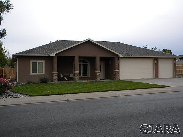 Stunning split bedroom ranch home in newer Fruita subdivision. Enjoy the spacious master bedroom with private bath and abundant walk-in closet. Bright open main living area; the kitchen has granite counters, center island with breakfast bar and pantry, the living, dining and kitchen share the soaring vaulted ceilings. Separate from the master are two additional bedrooms, a second full bath and laundry room. Outside relax on the oversize patio and the beauty of the lush landscaped lawn. There is room for all the toys in the three car garage and also room to park the RV on the east side of the garage. This home is a must see for any buyer looking for a ranch style home in the Fruita area. Move in ready, home is immaculate!