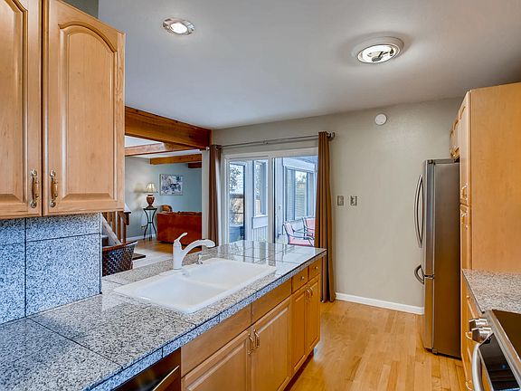 Fantastic townhome in Yosemite Village in the Cherry Creek school district. This fantastic, updated townhome has two bedrooms upstairs and two non conforming bedrooms and a bath and laundry in the basement. The main floor features a large living area with a fireplace, wood flooring, and beautiful beams on the ceiling. In addition, there is an updated kitchen complete with stainless steel appliances with beautiful maple cabinets, granite countertops, a dining area and a half bath. Upstairs there are two bedrooms and an updated bath with a new shower. The carpet is newer and there is a brand new furnace and the windows were replaced in 2017. The unit features a private courtyard and a one car detached garage with ample guest parking. The HOA recently replaced the roof.