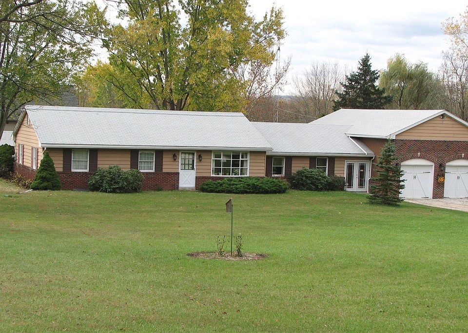 Brick to sill all around. Lifetime aluminum siding. $800 year heating bill.
