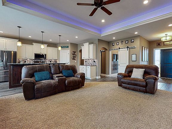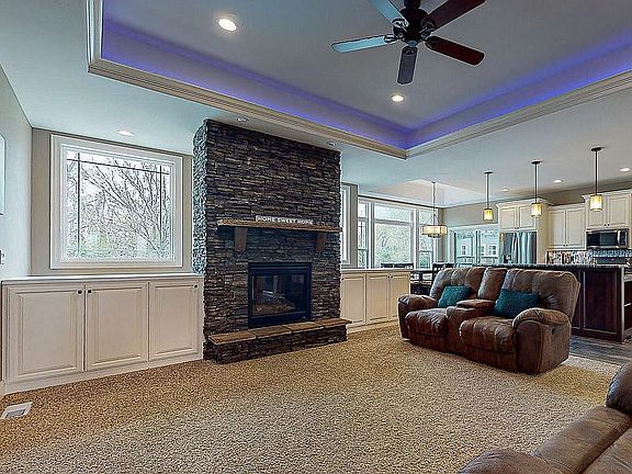 This like new ranch is located in a family-friendly neighborhood, on a quiet street, on a cul-de-sac, close to the desirable Linn Mar School district, shops, businesses, downtown Marion and Lowe Park where you can walk or ride your bikes to enjoy morning yoga or movies in the park. The main level has carpet and tile floors, tray ceiling, and features a fireplace and plumbed for a central vac. Also on the main level are 3 bedrooms, 2 full baths, mudroom and laundry. The kitchen features tile floors, granite counters, tiled backsplash, stainless steel appliances, pantry, breakfast nook and breakfast bar. Appliances stay with the home. The master bedroom is located on the main level and features carpet floors, tray ceiling and walk-in closet. The attached master bath includes tile floors, granite counters and Tub/Shower Combo. The finished walkout lower level features 3 bedrooms, full bath and storage area. Outside you'll find a treated wood deck and patio overlooking the yard with a chain link fence. Exterior features include a great view, pool and kids playset.