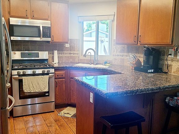 Welcome to Laurelwood community, where you'll find well maintained units, beautifully maintained grounds, as well as a pool and spa area! The subject is a single story end unit, that features upgrades that include new windows and doors, a water softener, an updated water heater, newer appliances as well as an alumawood patio cover and newer vinyl fencing. The floor plan is open with the dining area leading to the livingroom. The kitchen features a breakfast bar and plenty of cabinets and counter tops. The bedrooms are spacious with a walk-in closet in the master bedroom and closet organizers in both bedrooms. There is good quality laminate flooring throughout. All of this while also being close to the freeway and shopping.