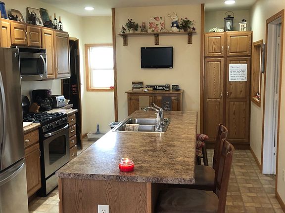 Beautifully remodeled home situated on a .92 acre lot. 1 1/2 story meticulously cared for home offers 3 bedrooms, 1 1/2 baths, large eat-in kitchen with large pantry, main floor laundry, all appliances including washer & dryer, newly remodeled full bath with walk-in tile shower, gas furnace and central air, 12x24 partially covered deck, large wrap around porch. 12 x 16 shed.