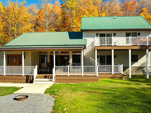 QUALITY ABOUNDS THIS SECLUDED COUNTRY HOME ON 5.7 ACRES IN THE HEART OF THE ALLEGHENY NATIONAL FOREST! Unique opportunity to own this home with open floor plan and a master suite loft. Enter the spacious foyer from the large covered front porch. This entry leads to a bedroom and a full bath. Then opens to the gorgeous and spacious open floor plan with living room, dining and kitchen. The living room offers HW floor, stone WBFP and more. The dining room with ceramic tile floor opens to the covered porch through sliding doors for added entertainment space. Boasting rights come with this beautiful kitchen that offers all the features that today's buyer is looking for. Wind up the spiral staircase to the stunning master bedroom suite. Step out the sliding door to the large balcony with a hot tub. The owner did not miss anything when adding a 22 x 28 metal garage to the already 24 x 24 garage. Blacktop driveway leads you to this private setting. Located minutes to the NYS Allegany State Park. Must be Pre Approved when scheduling showings on this property.