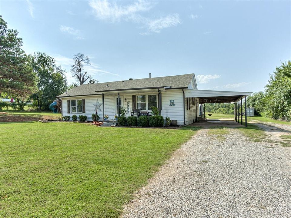 Qualifies for a USDA, rural development loan, which is 100% financing. This delightful property, nestled in the highly sought-after Choctaw-Nicoma Park School District, offers a perfect blend of modern updates and cozy comfort. With 1,308 square feet of well-designed living space, this cute house features 3 bedrooms and 1.1 bathrooms, all on 2.4 acres. Step inside to discover fresh paint and newer carpet that add a touch of contemporary flair to the home. The spacious living areas are perfect for relaxing or entertaining, while the updated features ensure you can move in and start enjoying right away. The property boasts a carport and an oversized 2 car detached garage/workshop, providing ample parking and storage options. For added peace of mind, there's a storm shelter on site. Outdoor living is a joy here, with a charming front porch that welcomes you home and a large covered back porch that's perfect for gatherings or quiet evenings. The fenced and cross-fenced yard offers both privacy and safety, making it a great space for pets. Don't miss out on this inviting home that combines practicality with a touch of warmth and character. Schedule your visit today and see why this house could be your perfect new home!