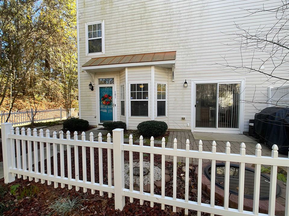 Well maintained private 3-story end unit townhome with large wrap around courtyard. Located in Wakefield with easy access to US 1, Falls of Neuse and I-540, Shopping, Dining, & More! 9' ceiling on 1st floor. Entire third floor is master suite with sitting area, vaulted ceilings and walk in closet. Room for sofa / tv area and office in the master. Large master bath with separate garden tub, shower and dual vanities. Open Main Floor w/ great natural light. Trees surround for a secluded private entrance. Patio Space off kitchen for grill and fire pit. 2nd floor offers 2 large secondary bedrooms & Laundry room. White picket fence and fire pit welcome you home to this special gem tucked among the trees and away from the parking lot.