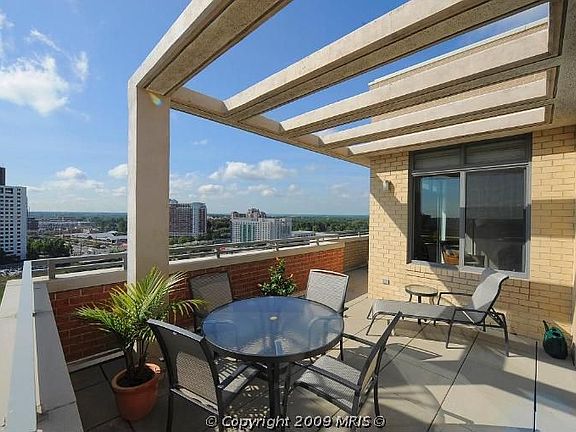 Breathtaking views from this spectacular penthouse; sunlight surrounds you, 10 ft. ceilings w/crown molding; private, wrap around terrace; granite, marble, hardwood floors w/open floor plan; garage; close to Metro and planned N. Bethesda Town Center; amenities include media room, sophisticated lounge and party room, gorgeous gardens, pool, fitness center & more!