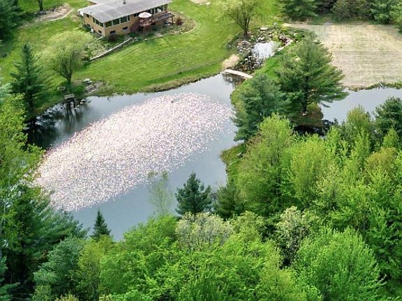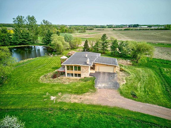 Wow! This unique and special place has many million-dollar views! The long and secluded driveway welcomes one to an enchanting park-like setting with hundreds of mature trees throughout a property that could be your very own private oasis. This hidden gem is located at the waters edge of two large, connected, crystal clear spring-fed ponds filled with many different species of fish and hosting an island in the main pond where multiple birds nest every spring…truly a naturalists paradise! Across from the pond, and surrounded by a lush forest, sits an adorable sleeping cabin that has a log fireplace as well as a nearby fire pit, which is for limitless stargazing. Behind the ponds there is a beautiful creek that cradles the backside of the property. Enjoy lunch around the pond at one of the concrete picnic-tables or at the delightful deck gazebo situated on the second level of the house. Jaw dropping four-season views throughout the two living areas are the trademark of this exquisite property. This very well-maintained home has wood floors flowing throughout the main level where there is a cozy primary bedroom as well as a one-of-a-kind large office/art studio showcasing through its many large picture windows the marvelous nature that surrounds the property in its entirety. Also on the main floor, the living room and kitchen have an open floor concept inevitably merging with innumerable trees and pond views all unfolding before your eyes as you enjoy a well-deserved morning coffee before taking a convenient 10-minute commute to work (Marshfield Clinic and downtown Marshfield are that close!). The two living areas, one on the main floor, and one in the basement, both have gas fireplaces and a total of 3 full bathrooms. The finished walk-out basement has 2 bedrooms, one with an offshoot library/office. This lower level also has amazing ground level views, where wildflowers, bumblebees, butterflies and hummingbirds will be your closest neighbors, always greeting you gracefully as you sit down and watch the world spin in the comfort of your own home. Such an incredible wildlife experience could only be topped by snow capped trees during the peaceful months of winter, when your feet will be warmed by the hydro floor heating (basement) during those cold nights. Dont be surprised if this property creates an endless debate among family members as to where to be happiest watching nature at its finest. A second inexorable debate will also be whether winter views are more beautiful than any other season (current owners feel this way!). In sum, the choice is yours, have a dream or live in one.
