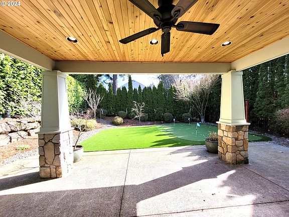 Golfers dream- Putt where you live! Better than new in Happy Valley's Eagle Landing with 3-4 bedrooms,(large bonus could be 4th)and oversized 2 1/2 car garage! Over $64,000 in upgrades and appliances included adds value to this home! Enjoy outdoor entertaining beautiful private back yard with covered patio area with ceiling fan, backyard turf with PUTTING GREEN, fully fenced with mature arborvitae, the perfect private outdoor living space! You will love this 2005 Renaissance home with plenty of upgrades and floor plan, spacious rooms, unique round entry with art niche, large great room open to kitchen with large entertainment center wall with 10' mantel, built in shelving and gas fireplace! Large kitchen/nook open to great room with hardwood floors, granite slab counters and pantry! Spacious Primary suite with huge bathroom with tile floors, 2 vanities, 6' soaker tub and enormous huge walk in closet-gives you all the space you need! Owners have made many more updates including Bosch dishwasher, 4 burner DCS pro gas cooktop with Jennaire downdraft, french door refrigerator, full height tile backsplash, under cabinet lighting, granite slab and pantry. Nice upper level laundry with Electrolux Washer and Dryer on pedestals, folding counter and built-in cabinets. Other improvements include- high efficiency gas furnace, gas water heater, air conditioner, garage door- means no worries on systems for years! Extra 15' deep tandem garage space perfect for storing your gear- e-bikes or motorcycle! Great location near Eagle Landing golf course and restaurants and shopping at Clackamas Town Center. Easy 15-20 minutes to PDX airport commute.