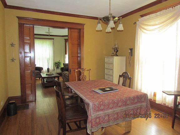 Quaint, Vintage, Charming home with natural woodwork, hardwood floors, pocket doors, updated kitchen and baths, front wrap around porch, garage, located on a corner lot with perennial gardens. Ready for your family to enjoy.