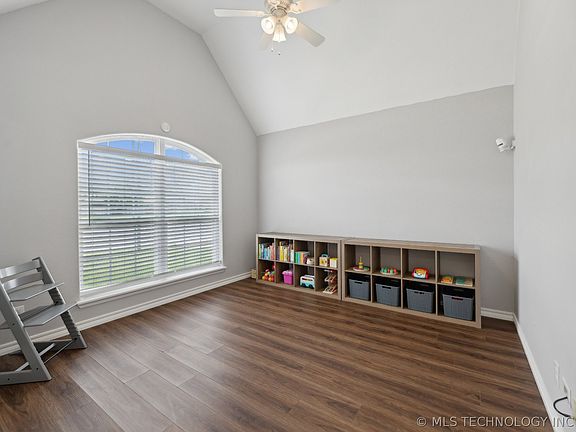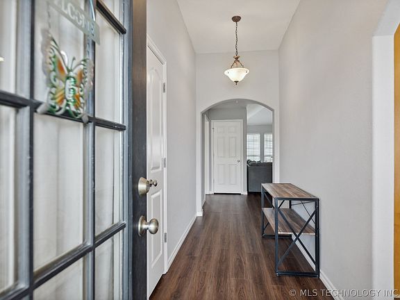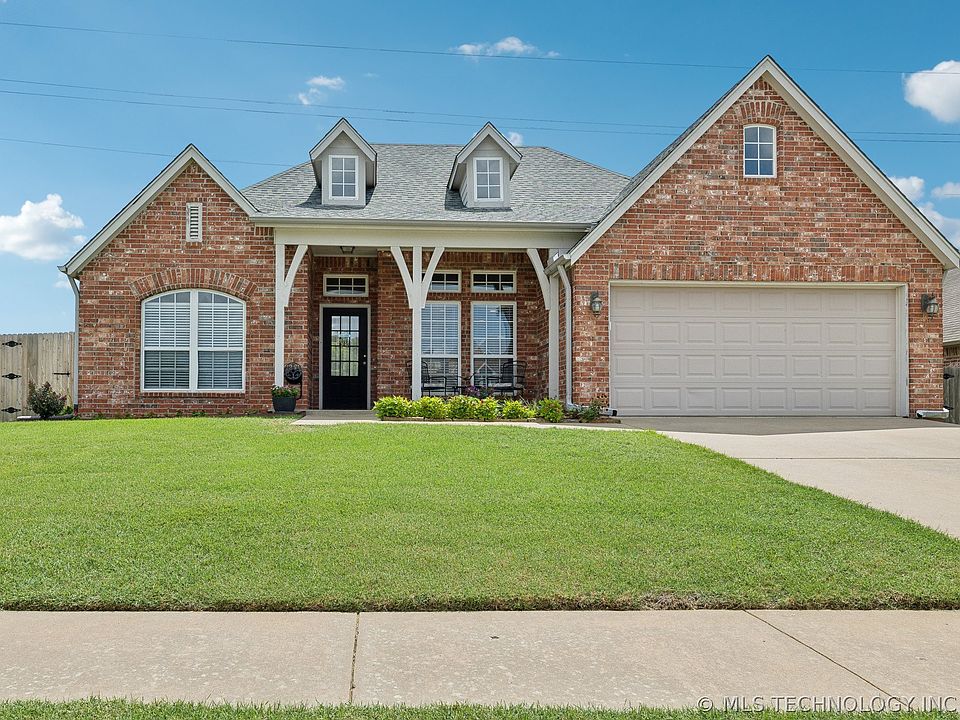 This very well maintained full brick beauty is nestled in the highly sought after Churchill Park with in the premier Jenks School District. The beautiful covered front porch welcomes you into the open floor plan which is great for entertaining. Flex room on main level can be office or formal dining. 2nd living area is up-stairs with walk-out attic storage. Newer carpet, fence and hot water tank & easy care luxury vinyl flooring. Fresh paint. Large corner lot with privacy fence and covered patio. Convenient location to H75, shopping, dining in downtown Jenks. Neighborhood playground with basketball court & walking trails. Hurry!!