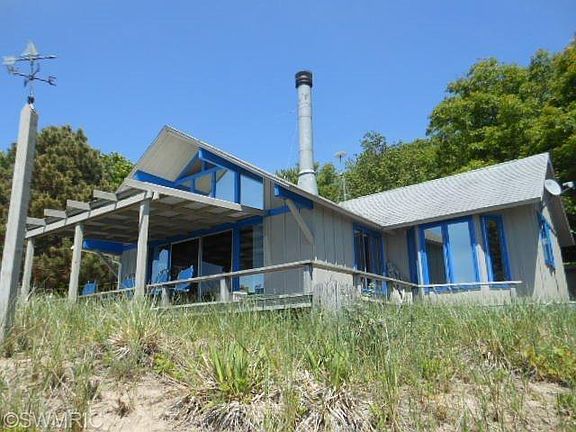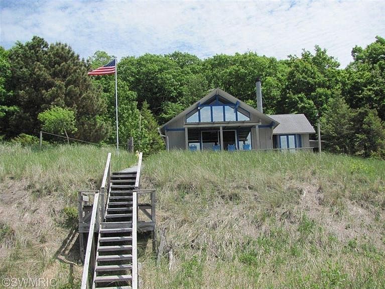 Beautiful view from every window!. Partially furnished Lake Michigan cottage with low bluff setting. Summer entertainment at its best. Cottage is surrounded by decks to enjoy the outdoor living. Screened in hot tub for added enjoyment. Master bedroom with 3/4 bath, second bedroom has built in bunk beds and spacious loft for added guests. Main floor laundry for added convenience. Buyer to verify all information.