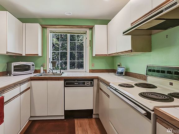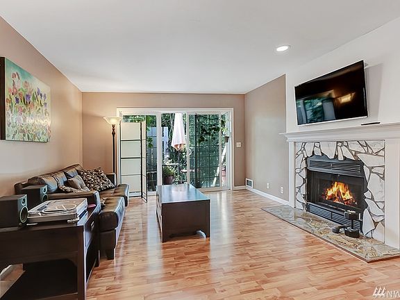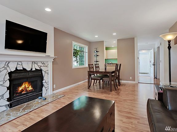 Must see condo! Private setting and well cared for home. Living room with a wood burning fireplace and a sliding glass door that goes out to your tranquil deck. Extra storage closet on the deck as well as the attic. Stacked W/D in unit. Includes two assigned parking spaces (one covered). Nicely updated 2nd floor condo in a centrally located community, only 4 mins to Mariner Park & Ride! FHA APPROVED!