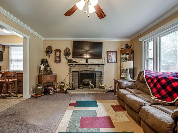 Charming 2 bedroom, 2 bath stone ranch home on a large lot! This beautiful home features a full basement, fenced in yard with a pool, and a 2 car detached garage with covered walkway to the home. In the living room you will find a fireplace, crown molding, and a large picture window allowing tons of natural light throughout the home. The kitchen has stainless steel appliances and lots of cabinet space for storage. Both bathrooms have been updated and have modern fixtures. There are 2 bedrooms upstairs and also two bonus rooms in the basement that currently function as bedrooms. The furnace and ac are 1 year old, water heater and sump pump are 3 years old, and the roof is 4 years old. Under the carpet you will find hardwood floors! This home will not last long - schedule a showing today!