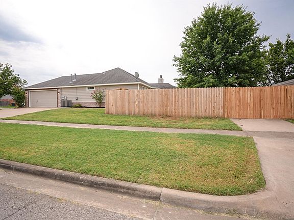 Updated home on large corner lot! New AC, paint, and fixtures! Beautiful wood-look tile in entry. Landscaping in front and back looks great with low maintenace! Concrete pad for storage bldg. No HOA... Owasso schools!