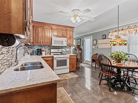 This beautiful home sits on a quiet cul-de-sac in the sought-after St James Woods neighborhood. You will fall in love with the renovated kitchen featuring gorgeous quartz counter tops, Italian marble flooring, newer appliances, gas range, remote control lighting under the cabinets, a custom fridge with interchangeable front panels, and more! For large parties move into the formal dining room or head into the living room and snuggle up next to your gas fireplace on those cold winter nights. The water heater also runs off gas so you’ll still have hot water, heat, and be able to cook if the power goes out. Upstairs the primary bedroom is huge with a walk-in closet and private bathroom. You will also find 3 more spacious bedrooms and a pull-down attic with flooring added for extra storage. The 4th bedroom even has a laundry chute straight downstairs to laundry room! You will absolutely love entertaining come spring time on your newer enlarged deck surrounded by blooms of Rose of Sharon, lilac, rosebuds, and peach trees. The yard has been meticulously maintained with an 8-zone irrigation system and will be mulched on April 4th.