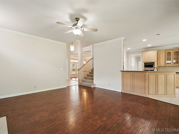 **SELLER OFFERING $5,000 CONCESSION TO BUYER** Charming Twin Creeks 5-bedroom home w/ NEW ROOF, exterior paint, new carpet, new windows 3-4 years ago, & fresh interior paint touch-ups. The home features an open kitchen, a breakfast nook & formal dining, primary bedroom & an office on 1st level, a very large game room & 4 bedrooms on 2nd level, all bedrooms have walk-in closets, 2-story grand entry open to formal dining. Twin Creeks is a highly desirable north Bixby neighborhood w/ park & pool. The spacious kitchen has stainless appliances, new built-in oven, breakfast bar, & view to the treed backyard. The home also has a full sprinkler system, covered porch, covered patio, & full privacy fenced backyard. Lighting updated to LED cool bulbs throughout.