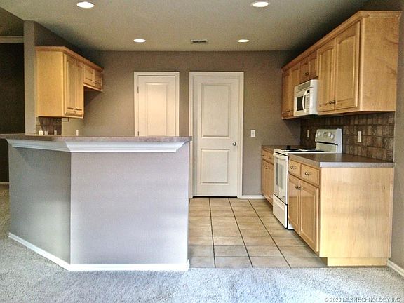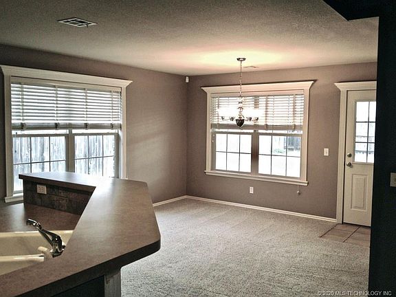 Nice home For Lease in Jenks schools. Living room w/vaulted ceiling and fireplace. Large open kitchen w/walk-in pantry, raised panel cabinets and eating bar. Master bathroom has two sinks & two walk-in closets. Covered patio. Established neighborhood w/park and trails. Conveniently located near highways, Oklahoma Aquarium, Jenks Riverwalk Crossing and Tulsa Hills Shopping Center. Dogs under 20lbs allowed. No cats.