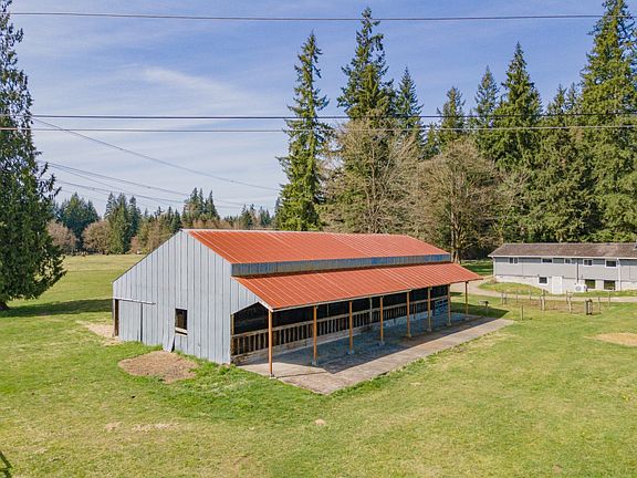 Desirable Arlington Heights equestrian lifestyle awaits with this one! Incredible country oasis brimming with pastoral charm! This updated daylight rambler offers 3 generously sized bedrooms/1.75 bath w/large kitchen that opens into a light & bright dining & living space. Extra storage & workspace downstairs. All usable flat 5 acres around the home features a large 40x80 ft barn for your livestock. Additional outbuildings included are a 10x15 woodshed. Potential ADU in a 600 SF extra living space connected to the 3 car detached garage. Tons of parking for all of your toys. Fully fenced large pasture. Just minutes to the charming little town of Arlington. Easy access to I5 means you can work in the city & relax in the country. Welcome home!