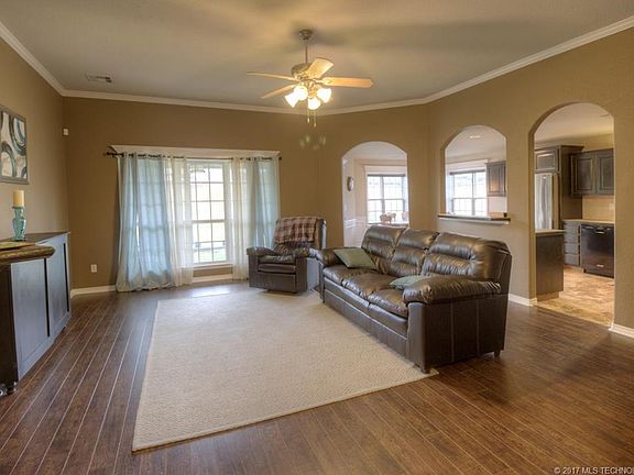 Must See! This 3/2/2 home is located in Brookfield Crossing. Open floor plan, crown molding and large covered patio. Owasso Schools.