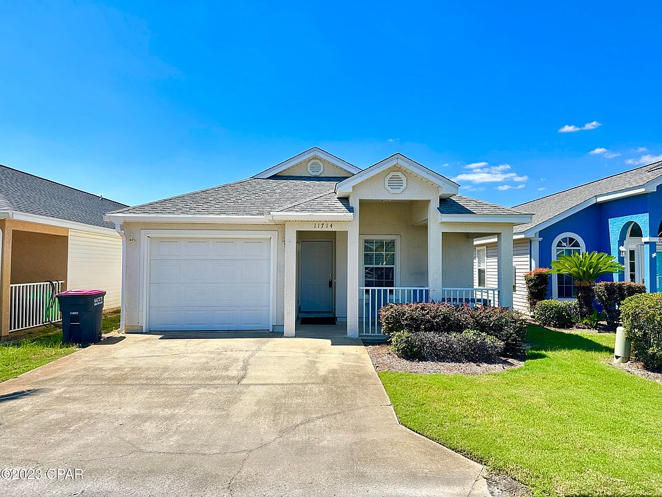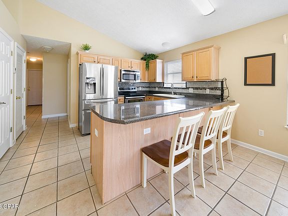 CURRENTLY UNDER CONTRACT, SELLER WILL CONSIDER BACKUP OFFERS. Situated within close proximity to popular shops, restaurants, schools, and the thrilling Shipwreck Island Waterpark, this three-bedroom, two-bathroom home ensures you're at the heart of it all in Panama City Beach. What truly sets it apart is its location - less than one mile away from the breathtaking Gulf of Mexico, allowing you to savor the beauty of the ocean whenever you desire. This residence is nestled in the welcoming community of Palm Cove, where you'll enjoy routine lawncare and community pools as wonderful perks! As you step inside through the main entry, you'll be greeted by an inviting open layout, complete with a vaulted ceiling and easy-to-maintain tile and laminate flooring throughout. The spacious primary bedroom includes a convenient walk-in closet, and the primary bathroom offers the luxury of a generously sized double-vanity. Whether you're seeking a personal haven or an investment opportunity, this property is the one to buy!