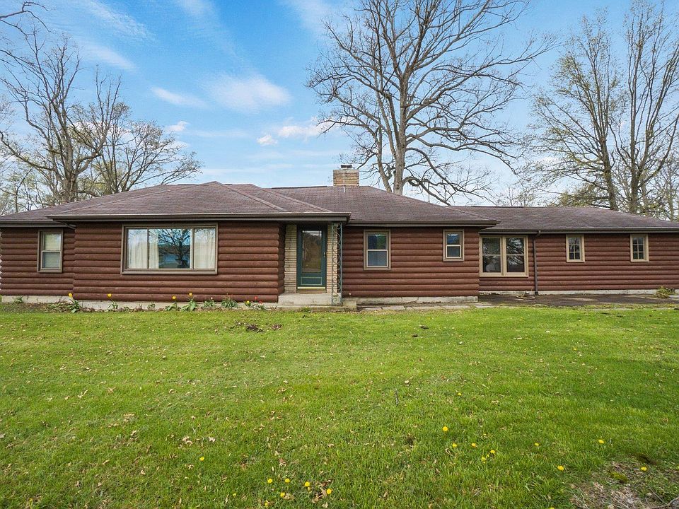 Perfect opportunity to move to the country!! This rustic log home is located on a ONE ACRE lot in a quite rural area. Home has had some updates but offering the opportunity to make it your own. 3 bedrms, 1 Bath w/almost 1,500 sq ft. BIG FEATURE-Spacious detached 3 CAR Garage, behind the home w/electric & can be heated. There is also a shed. Inside the home you will find a spacious Family Rm w/Large picture window, arched walkway, beautiful hard wood floors & 2 wall, built-ins cabinets. Throughout several rooms you will see knotty pine wall coverings that give the cozy cabin feeling. There is a separate laundry room with floor hatch that opens to the crawl space access to furnace. Washer/dryer are included along w/water softener. Home is on well & has sewers. Another living space includes the wood burning fireplace & has new carpet. The kitchen has been remodeled with new cabinets, counters, backsplash & all kitchen appliances included. There is also a built in desk. Heading to garage you will pass through the large breezeway that gives extra space for any other items you might need as you head out. This is a great location. It has the land, garages, & cozy home ready for you to make it your own. Home to be sold "As Is".