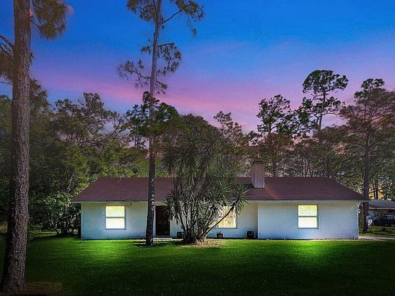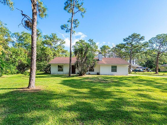 WELCOME HOME to a private oasis that defines, nature lovers paradise and features (3) bedrooms, (2.5) baths, (2) car garage home that is resting on a premium 1.25 acre waterfront lot with no pond. ENTERING the home leads you to a beautiful solid wood antique front door and inside you are greeted by a wood burning fireplace with wall to wall real brick that would be stunning painted white, quality flat wall construction and a split floor plan. PASSING THROUGH you will discover a spacious kitchen boasting granite counters, island with bar, stainless steel appliance package, not one but two kitchen pantries and one is a large walk-in, convenient kitchen desk, under sink reverse osmosis system, high hat lighting, french doors, chair rail and tile flooring throughout the common areas. CLICK STEPPING OUTSIDE through the double french doors brings you into a 24' x 12' screened lanai that overlooks green space galore and your very own private outdoor oasis featuring; a garden with zoned sprinkler system and plush mature trees galore... pine trees, water and live oak trees, bamboo, cabbage, coconut and ponytail palms, royal poinsettias, pineapple patch, lemon, lime, mango, avocado, anon sugar apple, banana, orange, jackfruit, marigold and money trees, aloe vera, eucalyptus and soon to be a fully fenced yard (neighbor is putting up a fence on the east side of the property.) It is simply the perfect space for relaxing, raising a family and entertaining. HELLO PEACE OF MIND... 2013 roof, hurricane panel shutters for all window openings, (5) Lorenzo cameras, generator hook up, AT&T fiber optic high speed cable and no HOA fees. LOCATION LOCATION LOCATION This charming home is tucked away in a superb yet quiet location and is just minutes to every convenience one could possibly desire; shopping, dining, Florida's Turnpike, I-95, Palm Beach International Airport, arts, entertainment, world class equestrian shows and facilities, beaches, theater, golf, business and economic development, education, green living and nine quaint parks with countless year-round outdoor activities such as; play grounds, picnic areas with grill pavilions, fishing, fitness trails, equestrian trails, football, baseball, soccer fields, skate and equestrian parks, basketball, volleyball, racquetball, tennis and much more. HURRY... Come take in the fresh country air and peaceful sounds of nature, build a pool, guesthouse, shop, chicken coop and bring your toys, pets or just about anything your heart desires. Enjoy your life away from the hustle and bustle and your evenings gazing at the stars sitting around a bonfire with your loved ones and friends. PS: Be sure to check out the VIP buyer discounts on site!