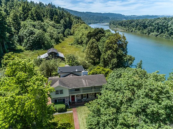 25 acre Family Estate on the Eel River! Over 3300 Sq. Ft. Of living space with exquisite views of the Eel River. 4 bedrooms, 3 baths, formal entry and dining room, spacious living room with fireplace and French doors to patio, hardwood floors, butler's pantry, sunny kitchen with granite counter tops, Wolf range, ample counter and cabinet space, breakfast nook, large Master Suite, updated bathrooms with walk in showers, numerous balconies to enjoy the river view, crown molding, built-ins and extensive use of natural wood throughout. Separate one bedroom, one bath guest house, detached garage, plus a separate barn with horse stalls and loft entertaining/game room above. Property is annexed into Rio Dell City limits and has city water.