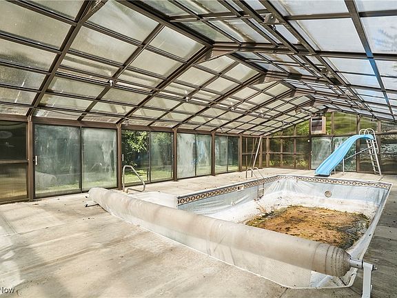 Situated on 2.25 acres in Sagamore Hills Twp, 11715 Dunham Road offers 3 bedrooms, 2.5 bathrooms, a pool with a retractable roof and so much more. The charm of this Cape Cod home welcomes you into a cozy living room with a fireplace, a first-floor master bedroom, Pella windows and an eat-in kitchen full of character. Adjacent to the kitchen, an additional living area awaits, complete with a wood burning stove and picturesque views of the private backyard and the formal dining room. Upstairs, you'll find two generously sized bedrooms - one featuring a built-in vanity and sink, and each offering ample storage. The basement presents endless possibilities, with designated areas for laundry, workshop space and additional storage. Outside, a porch with a retractable roof connects the home to the pool room, which also features a retractable roof, plus a slide for added fun! The property also includes three storage sheds/workshops, one with water and electric; all this just minutes from shopping, dining and highway access. Don't miss your chance to own this peaceful Sagamore Hills oasis!