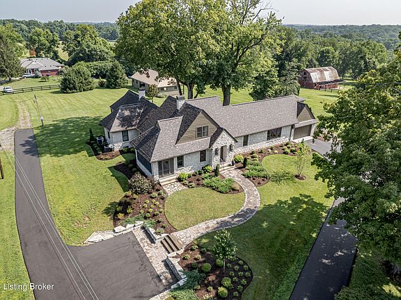This Rare Quiet & Peaceful retreat will not last long. Exquisite English Stone Charmer on desired covered bridge rd in Oldham co offers almiost 3 acres. This home has a separate cottage home for guests, mother in law suite or college age young adults (opportunities are endless). Views are breathtaking, and the barn is ready for your horses. This 4br/2.5ba offers over 3300 sq ft and is an entertainers dream bounding a chef's kitchen with a dynamic island that is open to an inviting living space. Attention to detail is noted throughout this home and the entire premesis. Some amenities can't be found elsewhere. Entryway with closet, beautiful vestibule as guests arrive, spacious dining room that will hosts your party comfortable. This home also offers primary bedroom on the main floor. Home also offers a large sitting area/office/library off the primary bedroom with an additional room that can be used as your personal gym/exercise room or so much more. Please call for your personal showing. Too many amenities to mention. 50 Year roof just installed, recently totally remodeled. Whole house generator installed. Copper caps on chimney's