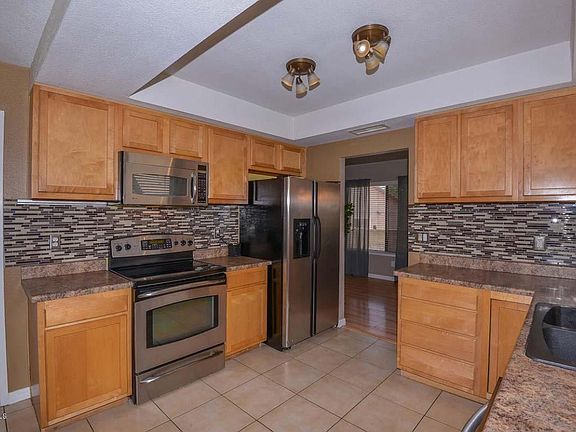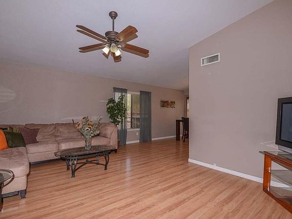 Bright and open floorplan on large corner lot. Inviting interior has two-tone paint, dual pane windows, & tile and wood flooring throughout. Formal living/dining area. Updated kitchen w/ stainless appliances, tile back splash, movable island with granite counter and eating area. Large windows provide great views to backyard. Cozy family rm is down a few stairs with brick fireplace, wet bar, and sliding glass door to patio - great for entertaining. Outdoor fun in the huge backyard with gazebo sitting area, grass lawn, fire-pit, and pool with movable slide and safety fence. Large RV gate and concrete slab to park your RV and Boat. No HOA. Lots of storage inside/out including shed and 3-car garage w/cabinets. Great location w/schools nearby as well as Westgate and Arrowhead shopping/dining