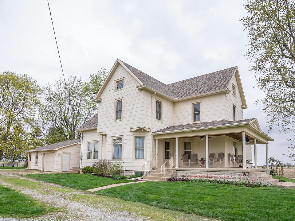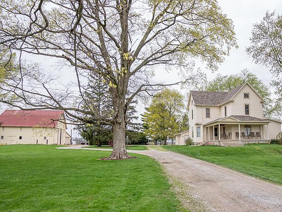 OPEN HOUSE 4/17 1-3pm Charming farmhouse, 5 minutes from I-71. Enjoy beautiful country views from the large wrap around porch. The yard features mature trees, 2 large barns, a smaller building and pasture. When you walk through the front door to an original fireplace with ventless gas logs, & all original hardwood floors and trim. The main level includes a large master suite with a newly remodeled master bathroom, heated tile floors, a first floor den/office space, large living space, dining room and new top of the line kitchen with quartz counter tops, high end appliances, and an oversized island perfect for entertainment. Mud room and walk in pantry located just off the kitchen. 3 large bedrooms and full bath w/ walk in closet upstairs - Large attic for addt'l storage
