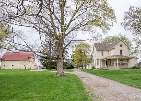 OPEN HOUSE 4 17 1-3pmCharming farmhouse, 5 minutes from I-71. Enjoy beautiful country views from the large wrap around porch. The yard features mature trees, 2 large barns, a smaller building and pasture.When you walk through the front door to an original fireplace with ventless gas logs, and all original hardwood floors and trim. The main level includes a large master suite with a newly remodeled master bathroom, heated tile floors, a first floor den office space, large living space, dining room and new top of the line kitchen with quartz counter tops, high end appliances, and an oversized island perfect for entertainment. Mud room and walk in pantry located just off the kitchen.3 large bedrooms and full bath w walk in closet upstairs - Large attic for addt'l storage