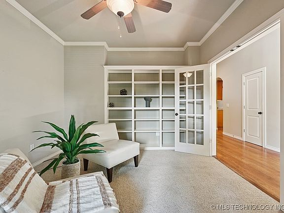 Classic and gorgeous with many recent updates including newer roof, very recent Heat/Air (both up/down) updated (approx 26k spent with Quality Air), newer hw tank, newer F-5 Storm Shelter holds up to 12 people, finished out attic PLUS floored attic (storage for days!), outside is hot-tub ready, excellent composite oversized deck. newer privacy fencing. newer shutters outside, newer ductwork, beautiful new picture window in dining, and so much more. Desirable FLOOR PLAN with 3 beds down, BONAFIDE office/formal dining, 1 bed up with landing/game area, plus finished out attic. Yes, it's in Bixby Schools and it DOES have a neighborhood pool.