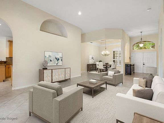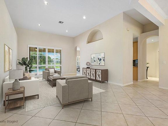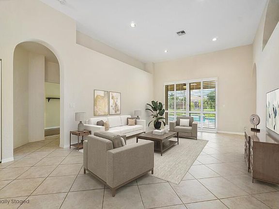 Beautiful pool home for sale in one of Wellington's most desirable guard-gated communities, Grand Isles! Situated on a waterfront lot this one-story home features 5 bedrooms, 3 bathrooms, a 3-car garage, and almost 3,800 square feet of indoor and outdoor living. Recent upgrades include a NEW roof in 2022, NEW accordion shutters & remote controlled hurricane screen in 2022, NEW pool & spa heater in 2022, NEW AC in 2019, and NEW water heater in 2019. Upon entering the double doors you'll fall in love with the open floorplan, vaulted ceilings, and incredible view. The formal living room and dining room are open to one another, perfect for entertaining, and flow seamlessly into an oversized family room and kitchen. The light, bright, and open kitchen features 42" wooden cabinetry, granite countertops, new stainless steel appliances in 2020, and a pantry. The kitchen also overlooks the massive family room and breakfast area, which has sliding glass doors that lead to a tropical paradise where you will be able to enjoy Florida living all year long! This backyard oasis features a private swimming pool, spa, a covered and screened patio, a fenced yard, and lush landscaping. The heated pool and spa also have new automated multi-color LED lighting for night swims. Back inside, this split floorplan offers a private master suite with two large walk-in closets, hardwood floors, and an en-suite bathroom complete with dual sinks, a roman tub, a separate shower, and linen closet. The fifth bedroom, featuring a walk-in closet, is located off the formal living room, alongside a newly renovated $20,000 designer cabana bathroom. On the opposite side of the home, you'll find three generously sized bedrooms with brand new luxury vinyl flooring along with a guest bathroom. Additional interior features include ceramic tile throughout the living areas, plantation shutters, and a laundry room. While exterior features include six security cameras that can be controlled from an app. The swimming pool and spa can be controlled from an app as well. Grand Isles is a guard-gated single-family home community located on the north side of Lake Worth Road just west of 441 (SR-7). Within the gates, you'll find incredible amenities, which include a clubhouse fitness center, locker rooms, swimming pool, spa, lighted tennis courts, basketball court, and playground. Top-rated schools are only minutes away along with the equestrian showgrounds and polo grounds. Students residing in Grand Isles are currently zoned to attend Panther Run Elementary School, Polo Park Middle School, and Palm Beach Central High School. Both Panther Run and Polo Park are within walking and biking distance. The Mall at Wellington Green, restaurants, and entertainment are also nearby along with the Florida Turnpike (4.1 miles away), Palm Beach International Airport (16.6 miles away), and Florida's sandy beaches (12.7 miles away). If you are looking for a spacious pool home in a desirable community this is it!