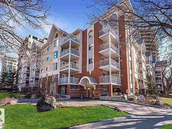 RIVER VALLEY VIEWS | VICTORIA PROMENADE | EXECUTIVE CONDO Live in one of downtown Edmonton’s most sought-after buildings! This sun-soaked, south-facing 2 bed, 2 bath executive condo offers over 1,000 sqft of beautifully updated living space. Enjoy river valley views from your private patio retreat—perfect for morning coffee or relaxing evenings. The open-concept layout features new floors, fresh paint, and thoughtful upgrades throughout. The oversized primary suite includes a walk-in closet and spacious ensuite, while the second bedroom and full bath offer great flexibility for guests or a home office. Just steps to parks, trails, dining, the Promenade, and all downtown amenities—this is urban living at its finest. Heated underground parking & Storage included. A rare opportunity in a truly iconic building. (photos digitally staged or modified)