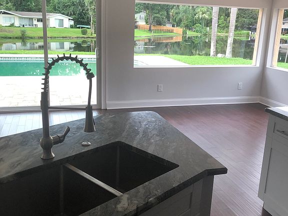Your tropical paradise awaits! This beautifully RENOVATED WATERFRONT pool home with SKI LAKE ACCESS is a relaxing retreat in the heart of Carrollwood! convenient to shopping, restaurants and schools. Amazing upgrades including professional grade kitchen appliances, scraped solid bamboo wood floors, new windows, wrought iron spindle staircase, wood burning FIREPLACE, new electrical and plumbing, all new bathrooms, kitchen, pool surface and pavered deck. Great layout with separate formal living and dining rooms, oversized FAMILY ROOM with stone fireplace and double sliders to backyard, and open kitchen with amazing water views make this a great home for entertaining. The stunning kitchen is the centerpiece of this home with white cabinets, upgraded STAINLESS STEEL PROFESSIONAL SERIES Frigidaire appliances including built in extra-large fridge, island with seating, pendant lighting, tons of storage and counterspace, and attached breakfast nook. Downstairs master bedroom features wood floors, two large closets, French doors overlooking pool area and lake, and attached bath with double vanity, soaker tub and huge shower with stone floor, seating bench and double WATERFALL showerhead. Huge windows line the back of the house and overlook the SERENE POOL area (pool is 10 feet deep!) and LAKE WITH DOCK! This home has deeded access to SKI LAKE CARROLL AND BEACH a mile away. This is the luxury you dream of with the convenient access of Carrollwood that you desire. Schedule your tour today!