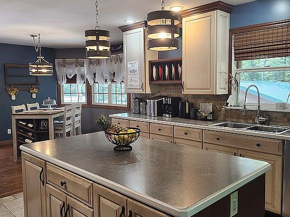 Gorgeous cape home on 1.5 acres 1 minute from town. 3 bedroom 3.5 bath finished basement with full bath murphy bed with fireplace. Livingroom has cathedral ceiling with floor to ceiling wood burning fireplace. Nice eat in kitchen and dining room. Master bedroom has walk in closet and beautiful Master bath. 3rd floor has 2 big rooms with jack and jill bathroom both have walk in closets. 2 stall attached garage and 24x24 garage with 10x24 lean too.
