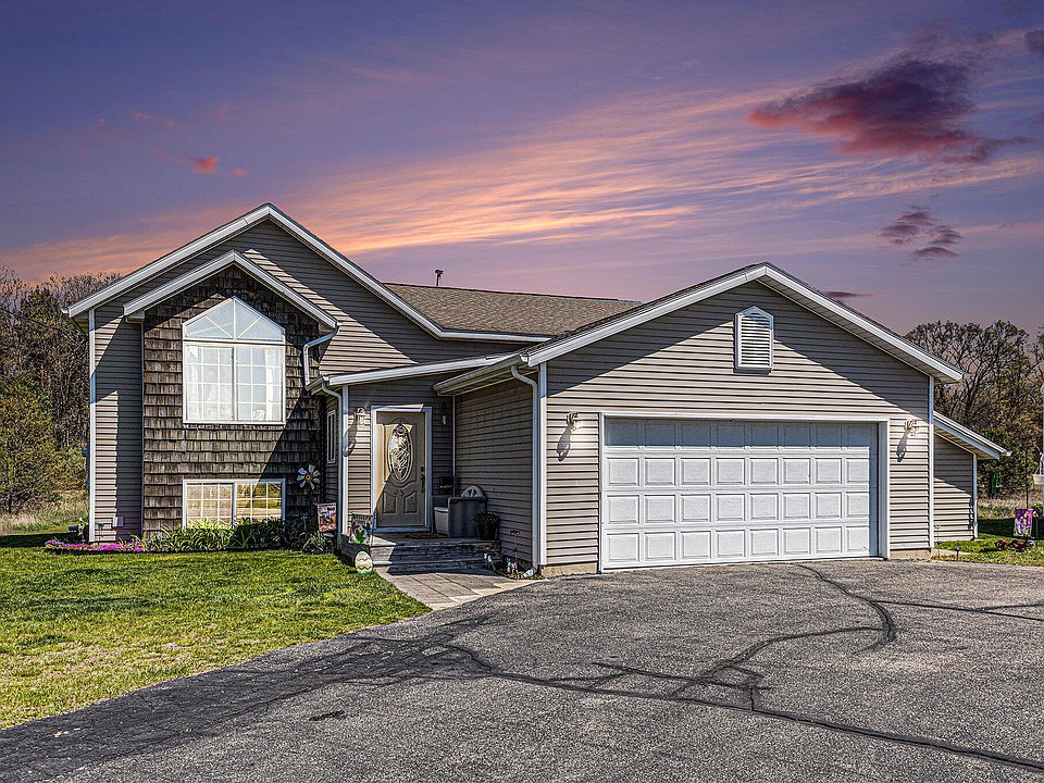 Tucked away on 9.45 private acres, this well-kept 3-bedroom bi-level is the peaceful escape you've been waiting for. As you walk in the front door, you're welcomed with soaring ceilings, a cozy bench to kick off your boots, and a handy coat closet. Head upstairs and you'll find an open-concept kitchen, dining, and living space that's perfect for gathering. The black and white kitchen pops with granite counters, a bold mosaic backsplash, and a spacious island that's great for prepping meals or pulling up a stool for a snack.