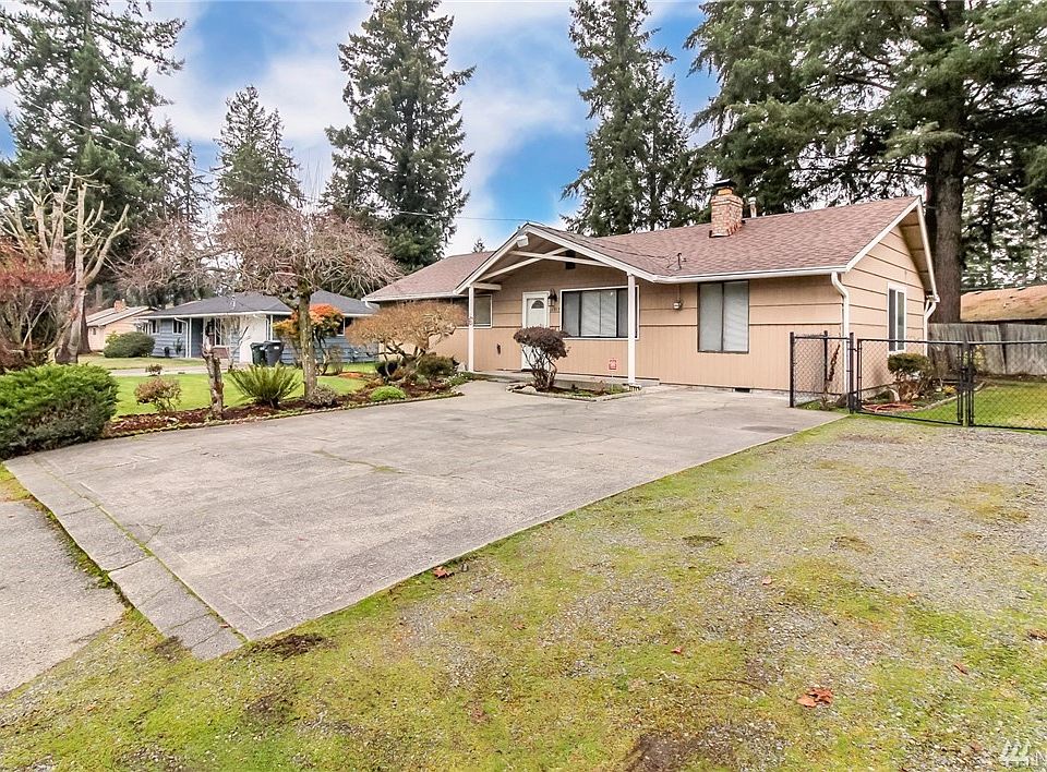 Super cute 3 bedroom, 1 bath rambler with a family room!! Huge, mostly fenced yard with garden space, a shed and 3 off street parking spaces. You will love the recently refinished oak floors and newer carpet. The galley kitchen has beautiful granite counters. Close to JBLM, schools, freeway and more!! New roof and more!