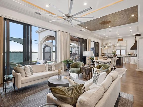 Priced to Sell Under Appraised Value! Sunsets, Sand, and Serenity: A Luxurious Beachfront Retreat! Discover the ultimate in coastal luxury with this spectacular wide-water single-family home, perfectly positioned for southern exposure and breathtaking open-water views. Rarely available, this stunning beachfront retreat offers an unparalleled combination of indoor and outdoor living, designed for both relaxation and entertaining. Step inside to find four en-suite bedrooms and an open-concept kitchen and living area that flows effortlessly to the outdoors. The updated kitchen features modern finishes and ample space for culinary creativity, while the living and dining areas provide panoramic views of the sparkling waters. Recent updates, including a brand-new roof, lanai screen and cage, and new flooring, elevate the home’s elegance and functionality. The exterior is just as impressive, featuring a two-story lanai with both covered and sunning areas, a private pool and spa, and an outdoor bar complete with a grill—perfect for entertaining friends or enjoying a quiet evening under the stars. Electric roll-down hurricane shutters offer peace of mind, and the wide sandy beachfront is just steps from your backyard, ideal for swimming, sunbathing, or simply enjoying the serenity of waterfront living. This exceptional home captures some of the most coveted waterfront views in all of Miromar Lakes and is offered beautifully furnished and move-in ready, all at a value priced below appraised worth. Residents of the #1-rated Miromar Lakes Beach & Golf Club enjoy 700 acres of freshwater lakes, three miles of pristine white sand beaches, boating, water skiing, a full-service spa, beach club, dining, and a wide array of recreational and social activities. Experience the pinnacle of beachfront living, your coastal paradise awaits!