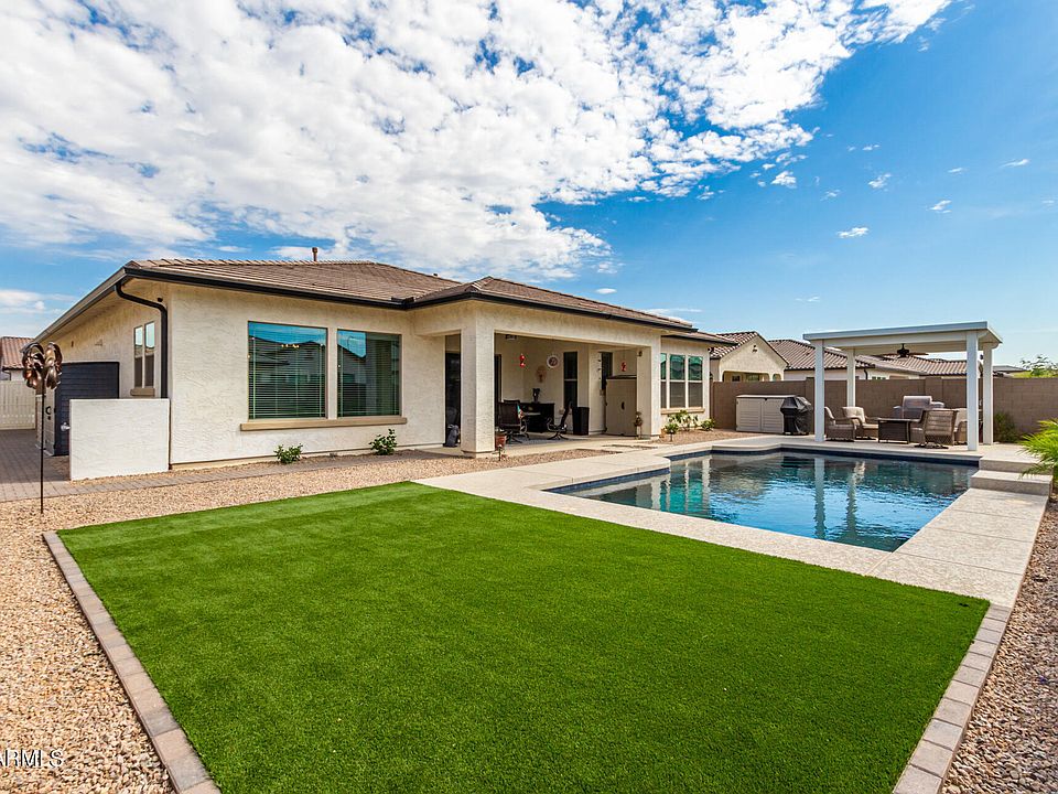 Priced to sell! Motivated Seller! Are you ready to move in into your unique custom designed dream home full of high-end upgrades, then you've found the right house! This home has been upgraded to be a forever home, a lot of curb appeal, beautiful details, a paver driveway, and a low- to zero-maintenance front yard. Plenty of windows provide a lot of natural sunlight and an open floor plan. The kitchen is A ONE OF A KIND, with the beautiful blue color that makes it pop! The rooms are very spacious all with walk in closets; the master bedroom has a big walk-in shower, double sinks, and a large walk-in closet. The backyard has over $100,000 that has been put into, including two covered seating areas, a breathtaking swimming pool, and more!