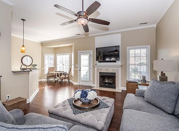 This beautiful ranch is located in a quite neighborhood with No HOA! Situated on a flat lot with a fully fenced back yard and a newly added covered porch with new professional landscaping. It features granite counters, stainless steel appliances, 42" cabinets, new commercial grade laminate flooring and fresh paint. Crown molding throughout, open floorplan with vaulted ceiling and gas fireplace. Split bedroom plan. Plenty of room to add a shed. Move in ready. Easy Commute to Charlotte.