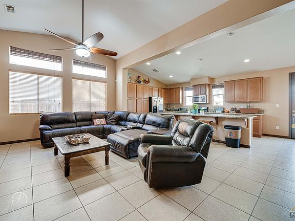 Pull into your upgraded driveway, The landscaping in the front yard boasts of 1 beautiful Date Palm and multiple fan palms. Inside the garage you will find a built in storage room. Great way to keep delicate things separated from the rest of the garage equipment.Inside the house you are welcomed to huge open floor plan. Great for entertaining or spending time with family. The flooring is an elegant 18 Italian porcelain tile throughout. Solar power PPA and a water filtration system are included! When stepping into the back yard it has the feel of your own personal paradise. Covered patio with ceiling fans, a stone fire pit, and cement that reaches both sides of the home. 11718 Christmas Rose also has 6' (not 5') privacy fence. And last but not least, a Bakersfield asset, beautiful inground pool with sparkling waterfall. Now you can look forward to those triple digit days. Welcome home!