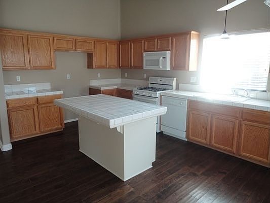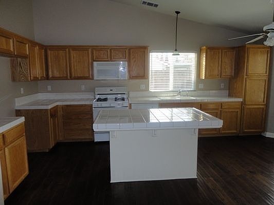 Separate living/dining room combination. Spacious family room with fireplace and open to kitchen. Center island/breakfast bar in the kitchen. Many cabinets. 2 blinds throughout the home. 4 wood (or wood like) flooring in living and family rooms. Tiled flooring in some areas of the home. Office off the entry way. New two tone paint. 3 car garage and large RV parking area.