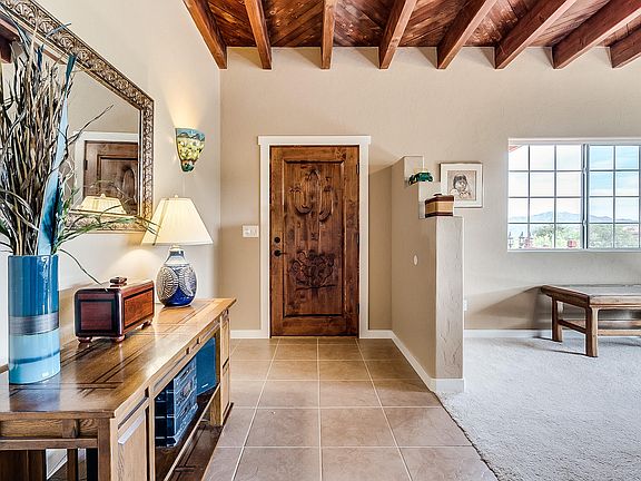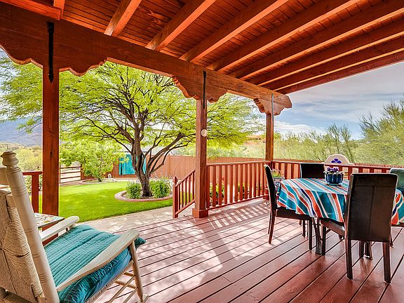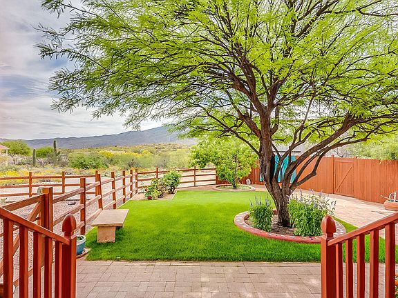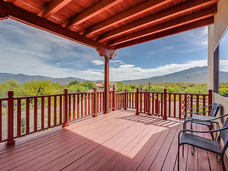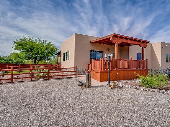 Custom built home with EVERY THOUGHT TO DETAIL, starting with the HAND CARVED, SOLID WOOD FRONT DOOR to the HIGH CEILINGS W/EXPOSED WOOD BEAMS AND HERRINGBONE WOOD INLAY. Large North facing patio includes SWEEPING VIEWS OF CATALINA AND RINCON MTNS, Large East Patio looks out to PRIVATE OASIS W/GRASS, FLOWERS, CACTUS GARDEN AND MATURE TREES w/Rincon Mtn views. Kitchen HAS GRANITE TILE COUNTERS, SS APPLIANCES AND HAND CARVED, SOLID WOOD CABINETS DEPICTING DESERT SCENERY. Master Bed w/large walk-in closet, huge bath w/walk in shower, Jacuzzi tub, double sinks and MORE VIEWS. Horse property includes large barn w/loft, currently used as workshop. Foam in roof for added insulation. Don't let the Golf Link address fool you, it is on a private road.