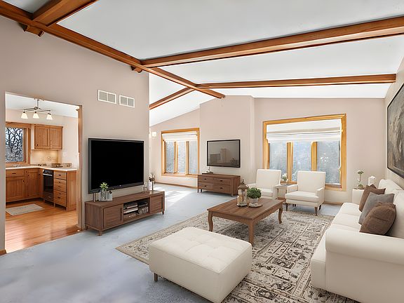 This beautifully kept house is on a big lot right by the water, giving you the perfect mix of comfort and nature! Inside, the kitchen has granite countertops and hardwood floors, leading to a dining room and a huge living room with high ceilings. A cozy family room with a fireplace is the perfect place to chill. A special hot tub room and an office make this house truly unique. Outside, you’ll find beautiful gardens, extra parking for an RV or boat, a storage shed, a garden house/shed, and a patio to enjoy your space! Recently, the house has been updated with new carpet/flooring, painting, windows and siding in 2022, a new roof in 2021, a new furnace and A/C in 2021, a new water softener in 2022, and a new water heater in 2020. Don’t miss the chance to own this peaceful retreat with easy access to the cities and nature!