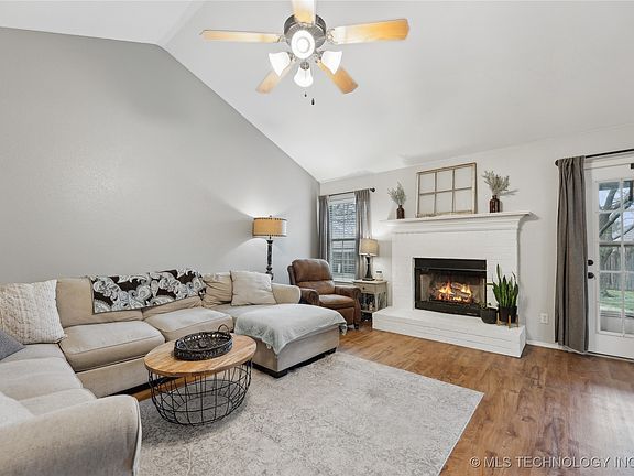 Welcome home to the desirable Churchill Park the heart of Jenks! 3 bedroom 2 bathroom 2 car garage. Living room w/ vaulted ceilings and fireplace. Cozy dining space. Big backyard, covered porch w/ full privacy fence. The spacious primary bedroom offers a private bathroom with dual sinks. The neighborhood features two parks with 1.7 miles of lighted trails! This property is minutes away from Jenks shopping, restaurants and Tulsa's new outlet mall.